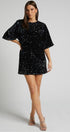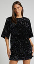 Gösterişli ve sofistike bir dokunuş için tasarlanan bu sonbahar/kış kadife pullu elbiseyle tarzınızı yükseltin. Parıldayan payetlerle eşleştirilen lüks kadife kumaş çarpıcı bir görsel etki yaratırken, arka V yaka kesimi zarif ama zarif bir çekicilik katıyor. Kısa kollu tasarım, onu serin akşamlar için mükemmel hale getirerek hem konfor hem de şıklık sunar.