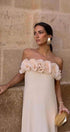Bu çarpıcı uzun elbise, elastik düz yaka ve dokulu çiçek şeklinde aplikeye sahiptir ve zarafet ve konforun bir karışımını sunar. Çok esnek trikodan üretilen bu ürün, şeklinizi zahmetsizce tamamlayan, şık ve düzenli bir uyum sağlar. Resmi etkinlikler veya akşam gezileri için mükemmel olan bu model, şık bir görünüm için topuklu sandaletler ve iddialı bir el çantasıyla güzel bir şekilde eşleşiyor.