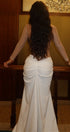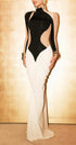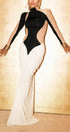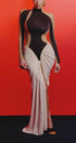 Amanda Renk Bloklu Drapeli Uzun Elbise