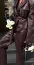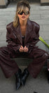 Amanda Sivri Yaka Ceket Deri Takım