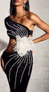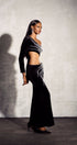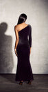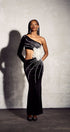 Amelia Çiçek Nakışlı Kesilmiş Kadife Maxi Elbise