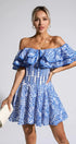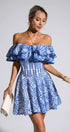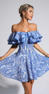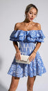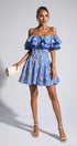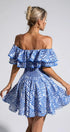 Amora Mavi Kesikli Fırfırlı Mini Elbise