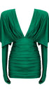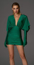 Bu mini elbise, sofistike ve çok yönlü bir görünüm için derin V yakalı, çıkarılabilir eldiven kollu ve dantelli korsajlıdır. İpek jarse örgü ve Tencel karışımından üretilen bu ürün, orta esnekliğe sahip, göz alıcı bir uyum sunar.