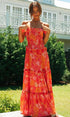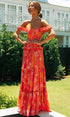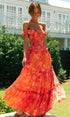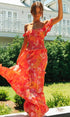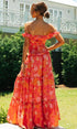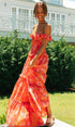 Nisan Ayı Baskılı Omuzu Büzgülü Büzgülü Uzun Elbise