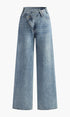 Asimetrik Belli Bol Paça Kot Pantolon