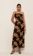Asimetrik Omuz Dekolteli Desenli Elbise
