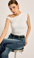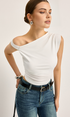 Asimetrik Kesim Yırtmaç Detaylı Fitilli Bluz