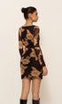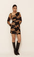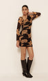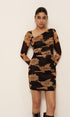 Asimetrik Yaka Uzun Kollu Desenli Elbise
