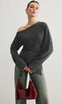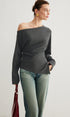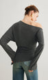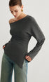 Asimetrik Yaka Yırtmaç Detaylı Büzgülü Bluz