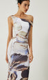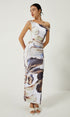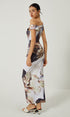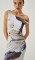 Asimetrik Baskılı Omuz Açık İnce Uzun Elbise