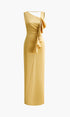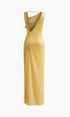 Asimetrik Volanlı Sırtı Açık Uzun Elbise