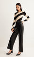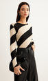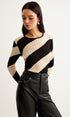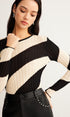 Asimetrik Çizgili Dar Kesim Triko Bluz