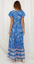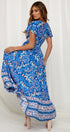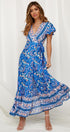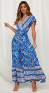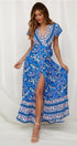 Atalan Baskılı Fırfırlı Anvelop Uzun Elbise