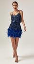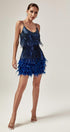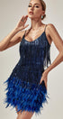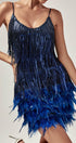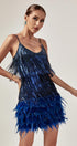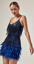 Austyn Püsküllü Tüy Mini Elbise Kraliyet Mavisi