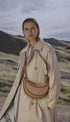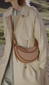 Yuvarlak şekli, köpük dolgusu ve el dikişi ile Avelin Omuz Çantası,eyer yapımının binicilik kodlarına gönderme yapıyor. Kanvas edisyonu, iki renk ipliğin birleştirildiği benekli yünden kesilmiş ve deri süslemelerle tamamlanmıştır.