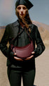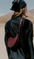 Yuvarlak şekli, köpük dolgusu ve el dikişi ile Avelin Omuz Çantası,yarım ay tasarımı,zıt eğrileri öne çıkarır.