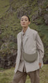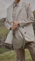 Yuvarlak şekli, köpük dolgusu ve el dikişi ile Avelin Omuz Çantası,yarım ay tasarımı,zıt eğrileri öne çıkarır.