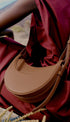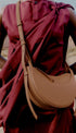 Yuvarlak şekli, köpük dolgusu ve el dikişi ile Avelin Omuz Çantası,eyer yapımının binicilik kodlarına bir göndermedir. Yarım ay tasarımı, zıt eğrileri vurgular.