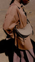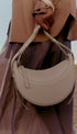 Yuvarlak şekli, köpük dolgusu ve el dikişi ile Avelin Omuz Çantası,yarım ay tasarımı,zıt eğrileri öne çıkarır.
