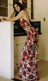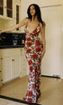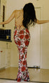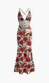 Arkası açık, baskılı V yaka tasarımı ve kolsuz kesimi ile moda anlayışınızı yükseltin.