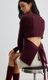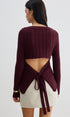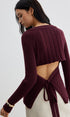 Sırt Dekolteli Bağcıklı Dar Kesim Triko Bluz