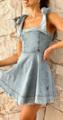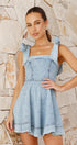 Fark yaratmak için tasarlanan şık mini elbisemizle tarzınıza adım atın. Göz alıcı kare yakası ve göğüs kısmında katlama detayı bulunan bu elbise, zarafeti modern zarafetle birleştiriyor. Kalın bağlama kayışları hem konfor hem de güvenli bir uyum sağlarken, görünmez arka fermuar kusursuz bir siluet sağlar.