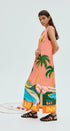 Renklerin konuştuğu bir tatil kartpostalı gibi… Banana House Elbise, retro turistik poster estetiğiyle tasarlandı. Palmiye ağaçları, muz detayları, deniz manzarası ve “Paradise” yazısıyla enerjik, cesur ve dikkat çekici bir yaz stili sunuyor. Hafif dökümlü kesimi ve yırtmaç detayı sayesinde hem sahil hem şehirde özgürce hareket etmeni sağlar.