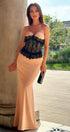 Barbara İşlemeli Dantel Straplez Uzun Elbise