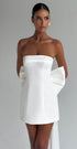 Işıltılı davetlerin en zarif yıldızı olmaya hazır mısın? "Barbara Mini Elbise", sade formuna rağmen etkisi büyük bir tasarım. Bel kısmından başlayan büyük kuyruklu fiyonk detayı, her adımda gözleri üzerine çekerken; straplez kesimiyle zarif omuzlarını ön plana çıkarır.