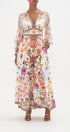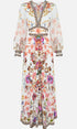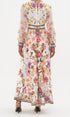 Belen Baskılı V Yaka Balon Kol Maxi Elbise