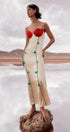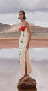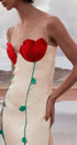 Belle Gül Detaylı Yüksek Yırtmaçlı Maxi Elbise