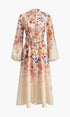 Kuşaklı Balon Kollu Çiçek Desenli Elbise