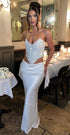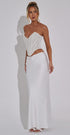 Bernadette maxi etek, saten dokusu ve zarif dökümlü formuyla adeta şıklığın yeniden tanımı. Vücuda oturan yüksek bel yapısı sayesinde silüeti uzatırken, kuyruklu arka detayı ve hafif drapeleriyle her adımda büyüleyici bir hava yaratır. Davetlerden düğünlere, nikah sonrası kutlamalardan özel anlara kadar her an için kusursuz bir seçim.