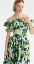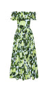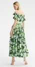 Bess Baskılı Fırfırlı Omuzu Açık Katlı Maxi Elbise