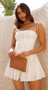 Bu büyüleyici mini elbise, daha fazla destek için iç silikon tutma yeri ile göz kamaştıran kalp şeklinde bir yakaya sahiptir. Göğüsteki yumuşak çukurluk rahat bir oturuş sağlarken, ayarlanabilir bağlama kayışları kişiselleştirilmiş stile olanak tanır.