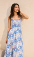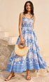 Bohem Çiçek Desenli Kloş Uzun Elbise