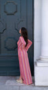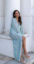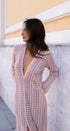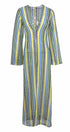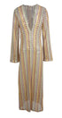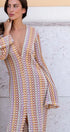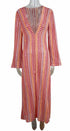 Boho V Yaka Çan Kol Dalgalı Çizgili Tığ İşi Plaj Tatili Maxi Elbise