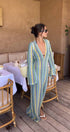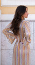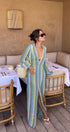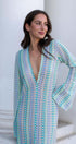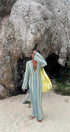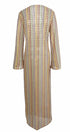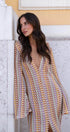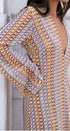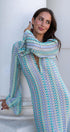 Boho tarzı tığ işi örgü elbiselerimiz ile keyifli bir tatil havasına kaçışın. Butiğimizdeki bu tatil amaçlı maksi elbise, tığ işi örgü üzerine renkli dikey dalgalı çizgilerle büyüleyici tavus kuşu benzeri bir etki sergiliyor. Yarı şeffaf kumaş, havadar ve kaygısız bir his sunar; güneşlenmek veya plaj esintisinin tadını çıkarmak için idealdir. Göz alıcı dekolteli, geniş uzun kollu ve uzun elbise kesimli bu kıyafet, tatillerin kaygısız özünü özetliyor, kadınlara zahmetsizce şık ve neşeli bir kombin sunarak sizi şık bir kaçamağın katıksız keyfine kapılmaya davet ediyor.