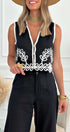 Şık baskılı desene sahip bu şık, tek sıra düğmeli yelek ceketle gardırobunuzu zenginleştirin. Dayanıklı polyesterden üretilen dar kesim tasarımı ve klasik yuvarlak yakası, şık ve göz alıcı bir siluet oluşturur. Göz alıcı baskı, zarif bir görünümü korurken çağdaş bir dokunuş katıyor.
