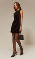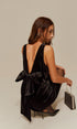Fiyonk Detaylı Sırt Dekolteli Kadife Askılı Elbise
