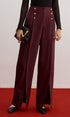 Düğme Detaylı Yırtmaçlı Bol Paça Pantolon