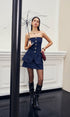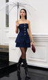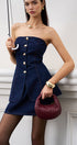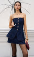 Düğme Detaylı Yırtmaçlı Denim Straplez Üst