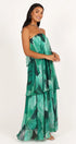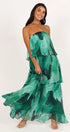 Calista Yeşil Bloom Straplez Katlı Uzun Elbise