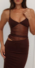 Elbise Çikolata ile ağzınızı açık bırakacak bir giriş yaratın. İnce ayarlanabilir askılar, astarlı göğüs kapları, file korse tasarımı, uzun uzunluk ve yan kesim detayları içerir. Sivri burun topuk ve mini omuz çantasıyla eşleştirerek tüm gözlerin üzerinizde olmasını sağlayın!