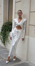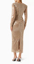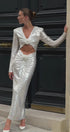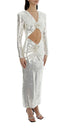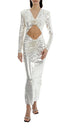 Tamamı göz kamaştırıcı pullu işlemeler ve 3 boyutlu çiçek detaylarıyla süslenmiş Cut-Out Pullu Elbisemizle gece kıyafetinize şıklık katın. V yaka ve dolgulu omuzlar sofistike bir dokunuş katarken, dökümlü detaylar ve uzun kollar çarpıcı bir siluet yaratıyor. Yüksek esnekliğe sahip, hoş bir uyum için tasarlanan ve konfor için tamamen astarlı olan bu diz altı elbise, dikişsiz bir görünüm için arka orta kısımda gizli bir fermuara sahiptir.