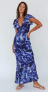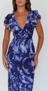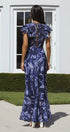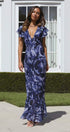 Cecil Baskılı V Yaka Fırfırlı Maxi Elbise