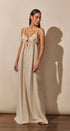 Celeste V yakalı Çiçek Yüksek Yırtmaçlı Uzun Elbise