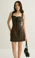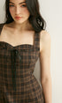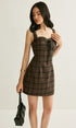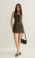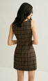 Dama Desenli Bağcıklı Kolsuz Kısa Elbise