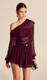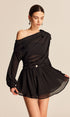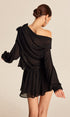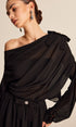 Yarı Şeffaf Şifon Tek Omuz Fiyonk Detaylı Etek Takım