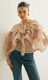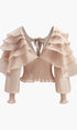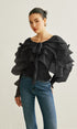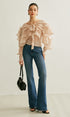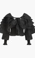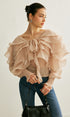 Yarı Transparan Şifon Fırfırlı Sırt Dekolteli Bluz